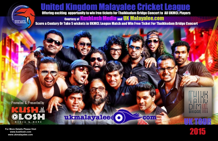LONDON June : Score a century or take five wickets in a League match and win FREE tickets to the forthcoming Live Music Concert by Kerala's firebrand music band Thaikkudam Bridge.