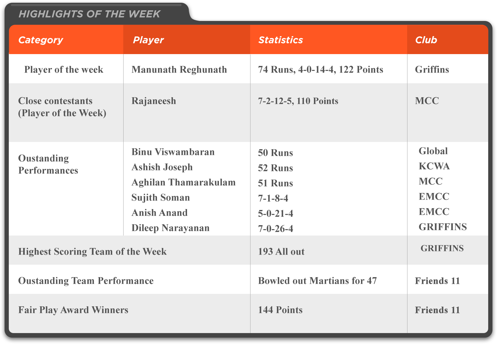 UKMCL eleven